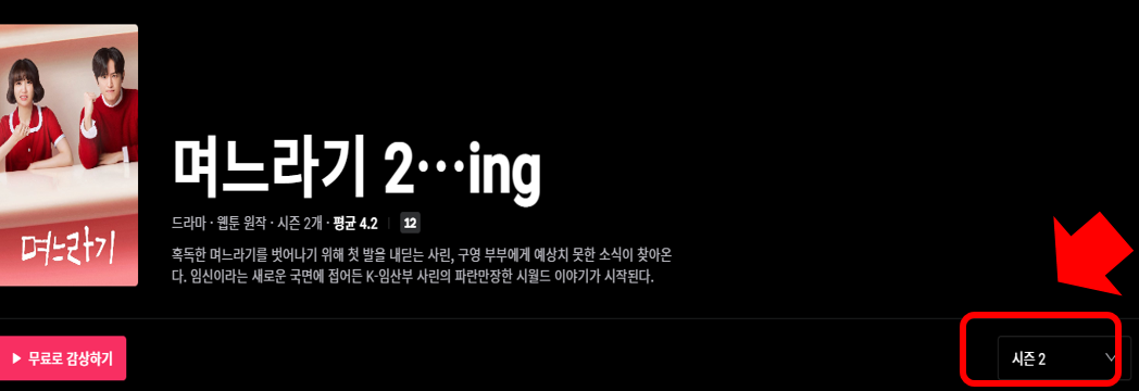 며느라기 시즌1은 웨이브로 다시보기가 가능했고, 며느라기 시즌 2는 '왓챠'로 OTT서비스가 변경되었습니다. 왓챠(watcha)에서는 며느라기 시즌 1,2 둘 다 시청할 수 있습니다. 왓챠 페이지에서 며느라기를 검색 후 우측에서 시즌1을 선택하면 며느라기 시즌1, 시즌 2를 선택하면 시즌2의 콘텐츠 정보, 회차별 정보를 볼 수 있고 원하는 회차를 선택해서 볼 수 있습니다.