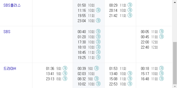 ‘펜트하우스‘ 재방송 시간대를 간단히 살펴보면 sbs 플러스에서 일요일 오전 00시 29분, 오후 8시 14분, 9시 42분에, sbs 채널에서 월요일 오전 0시 05분, 00시 45분에 재방송이 편성되어 있습니다.